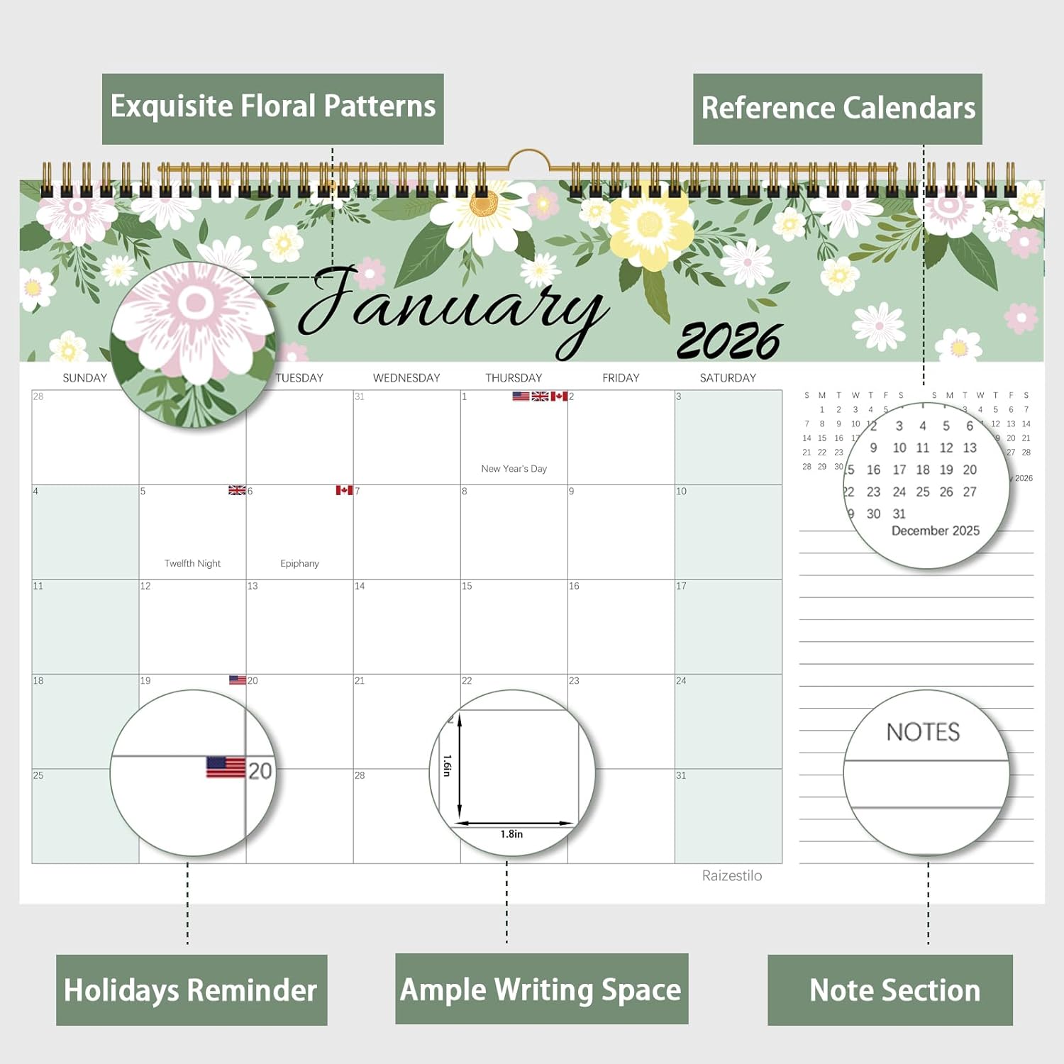 Calendar 2025-2026, Monthly Desk Calendar from July 2025 to December 2026, 17″ x 12″, Large Desktop Calendar Monthly, Perfect for Home or Office, Floral (Wall(17″ x 12″))